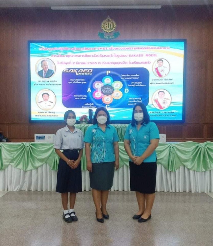 วันที่ 2 มีนาคม 2565 นางสาวสุนิษา สาลีพวง ผู้อำนวยการโรงเรียนเขาฉกรรจ์วิทยาคม พร้อมด้วยนางเรไร วารี ครู และนางสาวอริสรา พยัฆษา นักเรียนโรงเรียนเขาฉกรรจ์วิทยาคม เข้าร่วมประชุมวางแผนหาแนวทางในการพัฒนาคุณภาพการศึกษาจังหวัดสระแก้ว ตามรูปแบบ SAKAEO MODEL ตามแนวทางพัฒนา 6 ขั้นตอนด้วยกระบวนการ PDCA