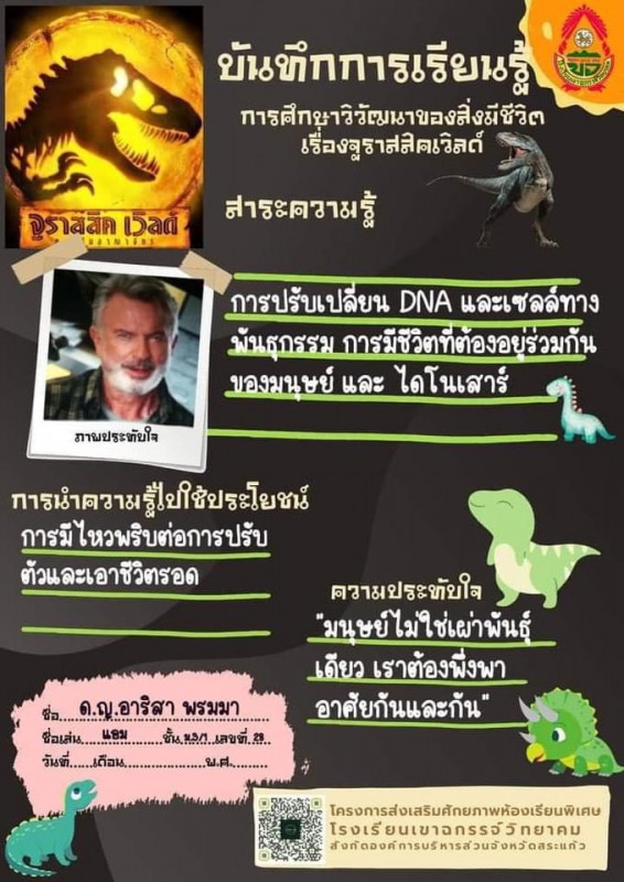 กิจกรรม ชมภาพยนตร์วิทยาศาสตร์เพื่อการเรียนรู้ เรื่องจูราสสิคเวิลด์