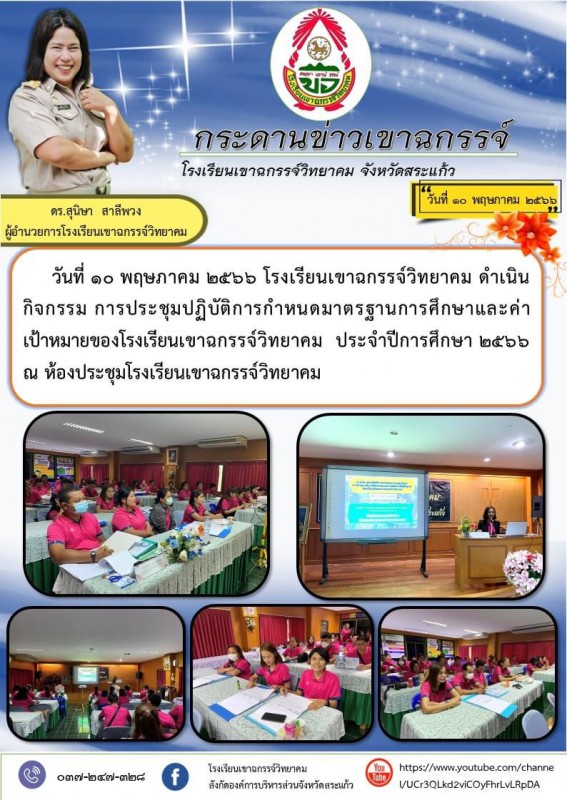 วันที่ 10 พฤษภาคม 2566 โรงเรียนเขาฉกรรจ์วิทยาคม ดำเนินกิจกรรม การประชุมปฏิบัติการกำหนดมาตรฐานการศึกษาและค่าเป้าหมายของโรงเรียนเขาฉกรรจ์วิทยาคม ประจำปีการศึกษา 2566 ณ ห้องประชุมโรงเรียนเขาฉกรรจ์วิทยาคม
