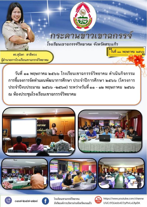 วันที่ 11 พฤษภาคม 2566 โรงเรียนเขาฉกรรจ์วิทยาคม ดำเนินกิจกรรม การชี้แจงการจัดทำแผนพัฒนาการศึกษา ประจำปีการศึกษา 2566 (โครงการประจำปีงบประมาณ 2566 –2567) ระหว่างวันที่ 11 - 12 พฤษภาคม 2566 ณ ห้องประชุมโรงเรียนเขาฉกรรจ์วิทยาคม
