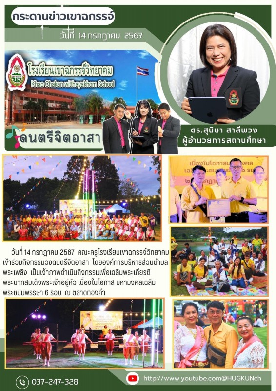 วันที่ 14 กรกฎาคม 2567 คณะครูโรงเรียนเขาฉกรรจ์วิทยาคม เข้าร่วมกิจกรรมวงดนตรีจิตอาสา โดยองค์การบริหารส่วนตำบลพระเพลิง เป็นเจ้าภาพดำเนินกิจกรรมเพื่อเฉลิมพระเกียรติพระบาทสมเด็จพระเจ้าอยู่หัว เนื่องในโอกาส มหามงคลเฉลิมพระชนมพรรษา 6 รอบ ณ ตลาดทองคำ