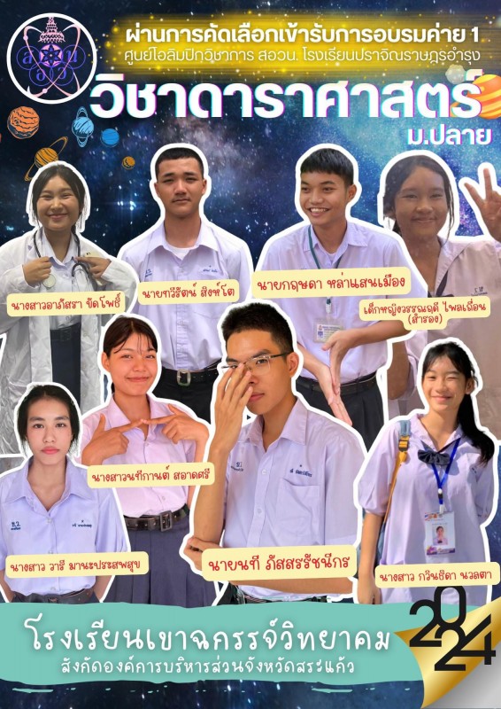 ขอแสดงความยินดีกับ นักเรียนโรงเรียนเขาฉกรรจ์วิทยาคม ผ่านการสอบคัดเลือกเข้าอบรมค่าย 1 โอลิมปิกวิชาการ วิชาดาราศาสตร์ ระดับมัธยมศึกษาตอนปลาย ศูนย์โอลิมปิกวิชาการ สอวน. โรงเรียนปราจิณราษฎรอำรุง ประจำปีการศึกษา 2567 ทั้งนี้ ขอขอบพระคุณ นายฐานิสร์ เทียนทอง นายกองค์การบริหารส่วนจังหวัดสระแก้ว ที่ให้การสนับสนุนและส่งเสริมการจัดกิจกรรมพัฒนาศักยภาพนักเรียน ขอบพระคุณ ดร.สุนิษา สาลีพวง พร้อมคณะผู้บริหาร และครูฆฤณพิสิฎฐ์ เขมอัครเจตต์ ผู้ควบคุมดูและฝึกสอน