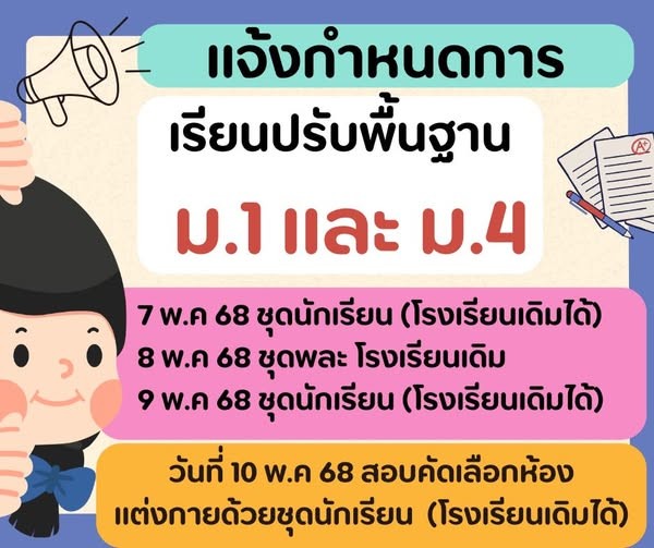 แจ้งกำหนดการเรียนปรับพื้นฐาน ปีการศึกษา 2568