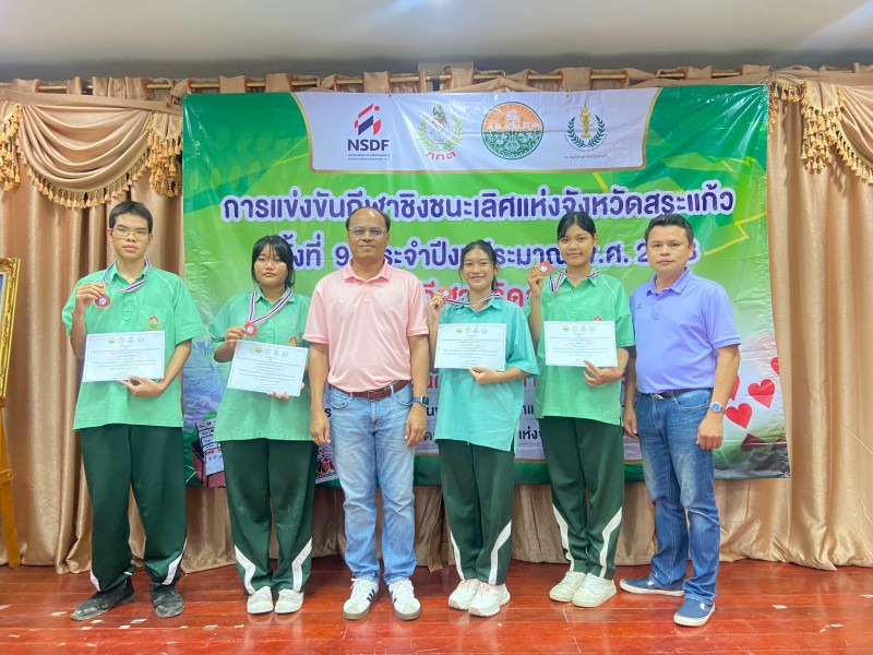 ขอแสดงความยินดีกับนักกีฬา มินิบริดจ์ การแข่งขันกีฬาชิงชนะเลิศแห่งจังหวัดสระแก้ว ครั้งที่ 9 ประจำปีงบประมาณ พ.ศ. 2568 กีฬามินิบริดจ์บริดจ์ รุ่นไม่จำกัดอายุ เหรียญทองแดง เหรียญเงิน