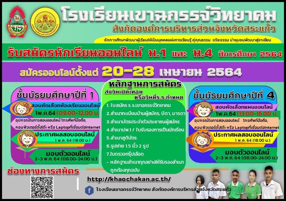รับสมัครนักเรียนออนไลน์ ม.1 และ ม.4 ปีการศึกษา 2564 สามารถสมัครออนไลน์ตั้งแต่วันที่ 24-28 เมษายน 2564